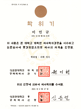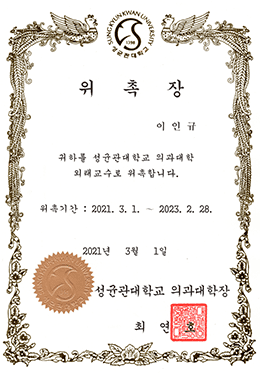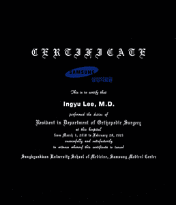 - 前) 서울 삼성 병원 정형외과 서브 인턴 수료